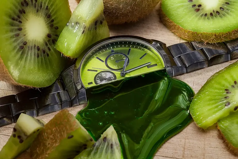 After thinking about the elements of this product that I'd want to exaggerate or call attention to I decided to create a series or campaign advertising multiple color options of the watch face. I wanted to really stress the point of how "juicy" these colors were. Which color fits your tastes? What "flavor" would you choose? These thoughts brought about the idea of comparing the color of the watch to foods that seem juicy. So if I am advertising a really pretty juicy blue watch, and I'm comparing it to say a blueberry, then how can I creatively show this idea in a visual way? Cut it open and let that color ooze out! A bit of a throwback to the many Gushers I snacked on as a 90's kid. But I certainly didn't have the means to make a clean, straight cut through this watch.