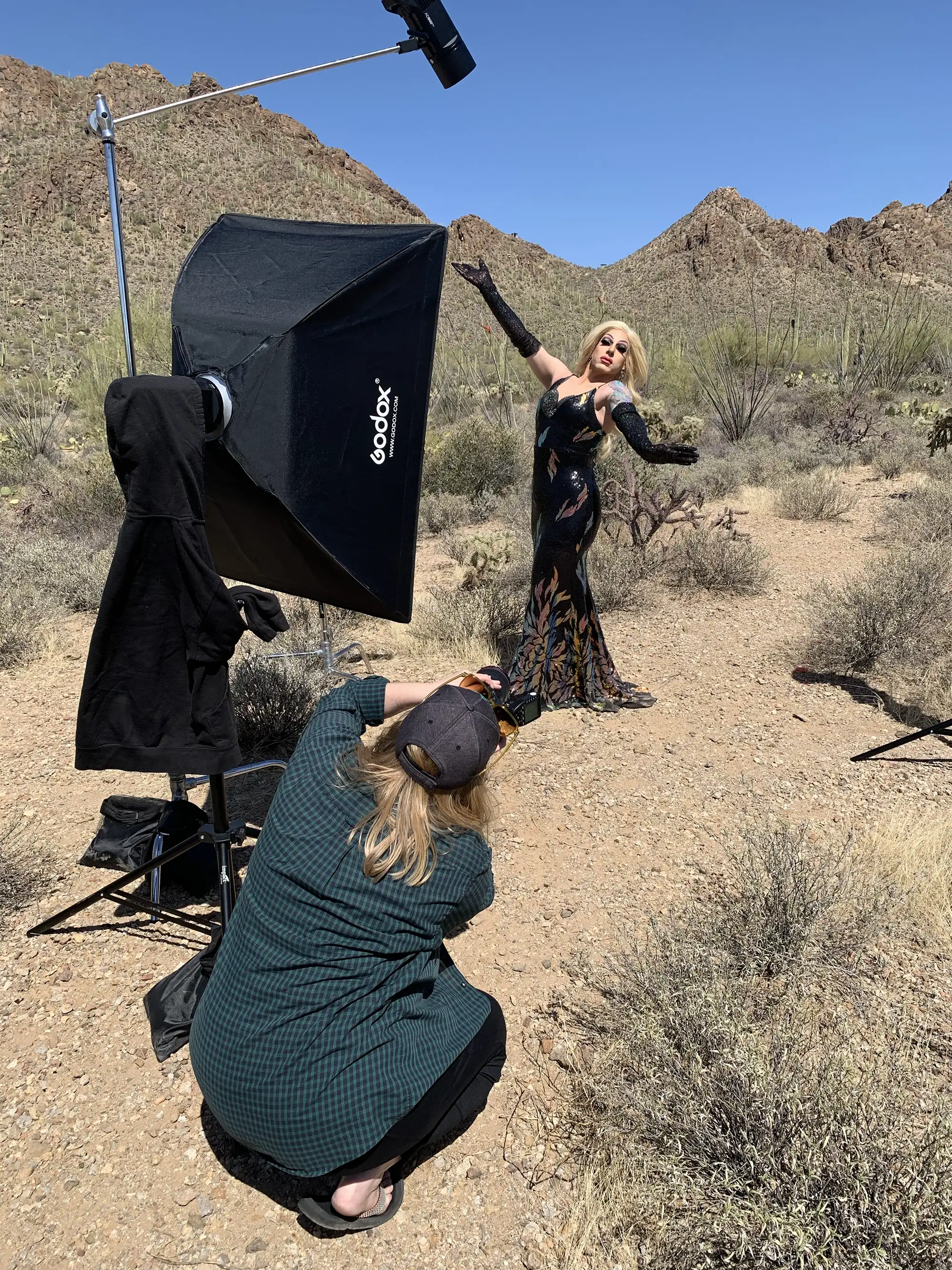 I reached out to Miss Nature asking if she and any other drag artists would be interested in shooting out in our beautiful desert. I explained my concept was to show a beautiful queen in a beautiful landscape and to also speak to the fact that the art of drag has reached so far and wide that it's even in our Sonoran Desert. She was immediately on board and we booked a shoot date.