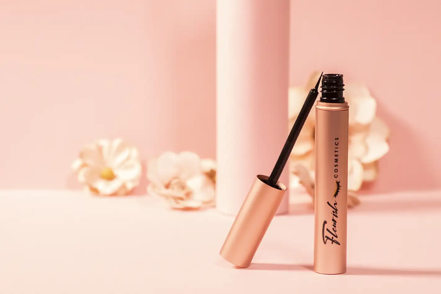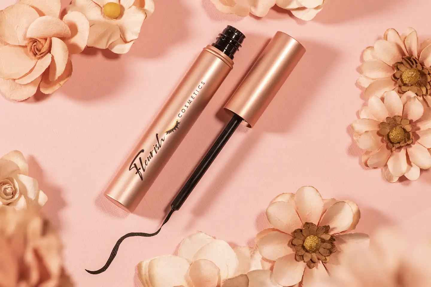 Each brand used minimalism in a different way. Fleurish wanted to use millennial pink in a nearly monochromatic scene that felt delicate. So I bought some paper in a millennial pink shade and stumbled across some paper flowers in that similar color genre. I focused on mimicking the curves of the lashes and the shapes of tubes. I kept the light simple and even to keep those colors flat and solid.